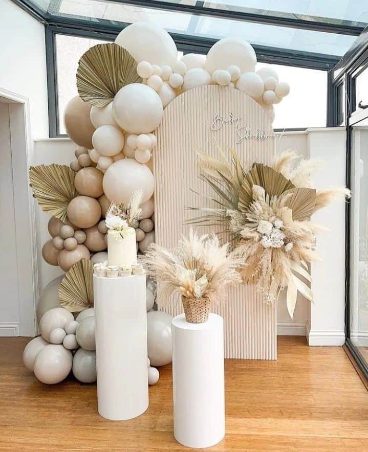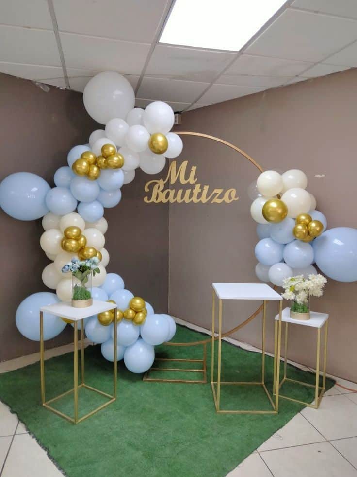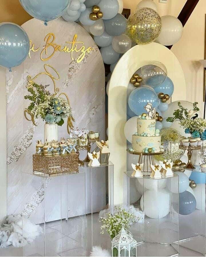 Decora la mesa de postres y la torta siguiendo el tema o los colores elegidos para el bautizo. Usa adornos, flores, banderines o figuras que complementen el estilo del evento.
